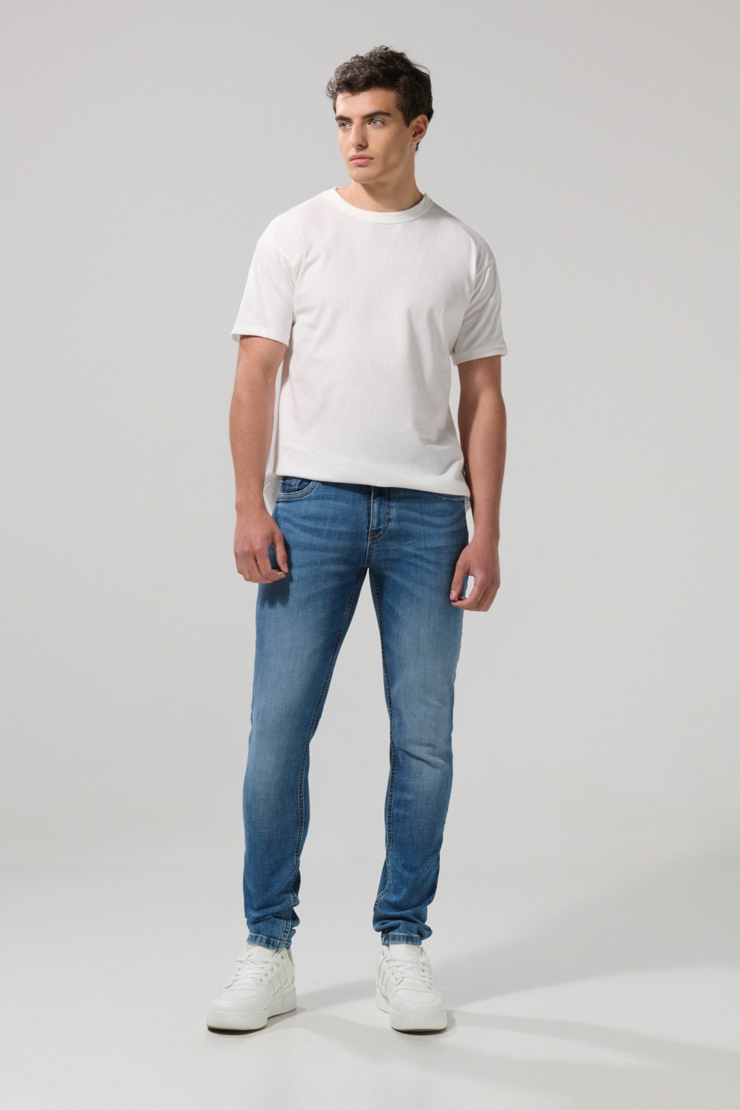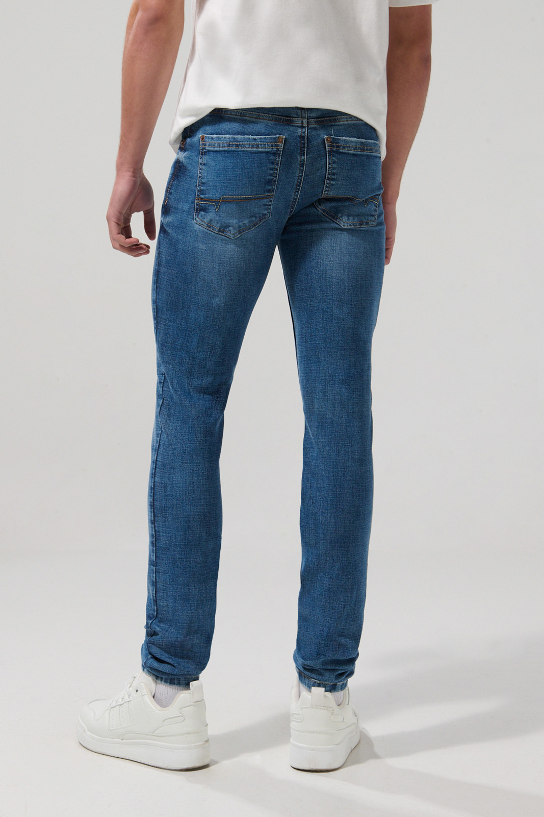 Jean skinny azul oscuro para hombre cuenta con cierre delantero con cremallera oculta, tiro bajo, ligeros desgastes localizados, 5 bolsillos funcionales y una silueta ceñida al cuerpo. Esta prenda es perfecta para combinar con camisas y tenis, su estilo moderno será ideal para lucir en tus planes diarios o de fin de semana.